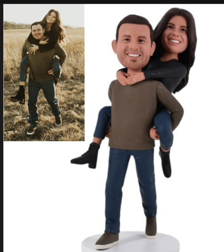 Custom Couple Bobblehead man carrying women from photo
