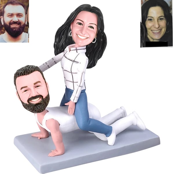 Couple Bobblehead woman sitting on man