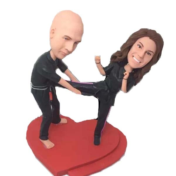 Custom Man and Woman Bobbleheads Cake Toppers taekwondo judo karate Jiu Jitsu